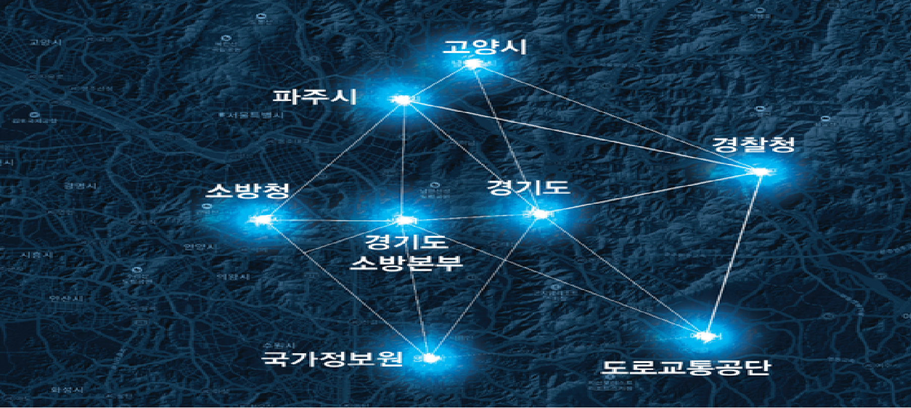 경기도는 '광역 긴급차량 우선신호시스템' 도입을 위해 경찰청(우선신호 규격 표준화), 소방청(소방시스템 연계 체계), 국정원(보안을 위한 총괄), 시군과 함께 유관기관과 협력체계를 구성했습니다. 경기도의 비상대응플랫폼인 '광역 긴급차량 우선신호시스템'의 원활한 추진을 위해 약 2년 동안 36개 관련기관과 50회 이상의 업무협의, 100명이 넘는 담당자들과 협력적 거버넌스 체계를 구축했습니다.